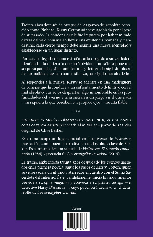 Hellraiser: El tañido (Subterranean Press, 2018) es una novela corta de terror escrita por Mark Alan Miller a partir de una idea original de Clive Barker.